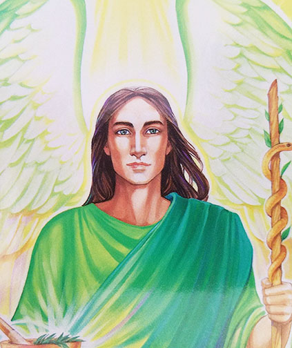 Archangel Raphael aka the Angel of Healing, is known for his gloriously emerald green light. His retreat is above Fatima, Portugal, from which he over lights Europe and oversees the the development of third eye chakras for all of humanity and supervises the abundance consciousness of humanity and encouraging attunement to the infinite plenty of the universe (pp. 76 & 77)